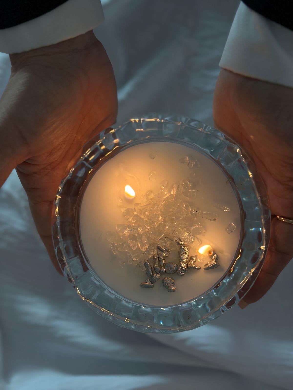 נר אנרגטי מלכה מעוצב בכלי זכוכית קריסטל