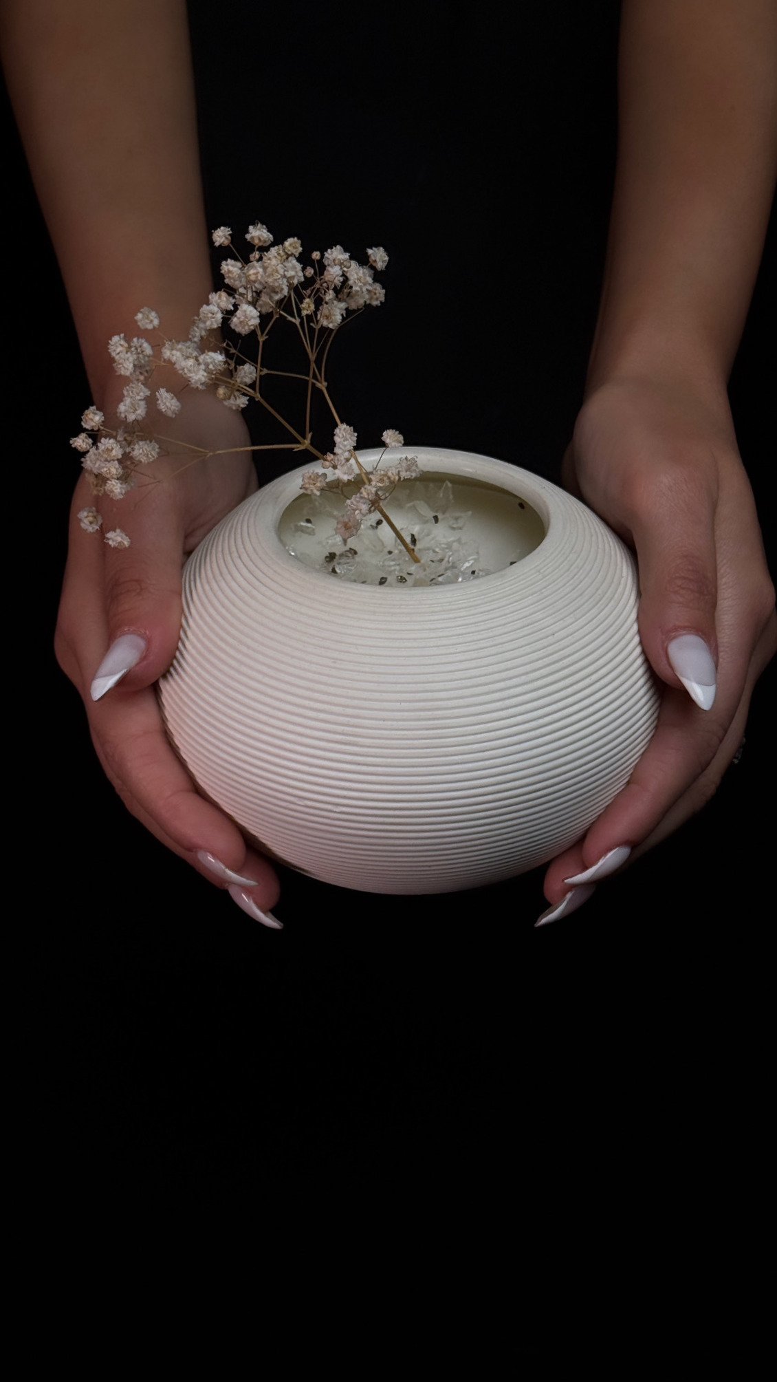 נר אנרגטי מרהיב ביופיו עם כלי מקרמיקה מהודר ובתוכו מלא ורדים וחמסה ועם אבני הכוח לתפילה ומעל נצנוצים לזוהר לאשה .יש בו תרכובת חומרים קבליים בתוך הנר ליצירת כח ברכת